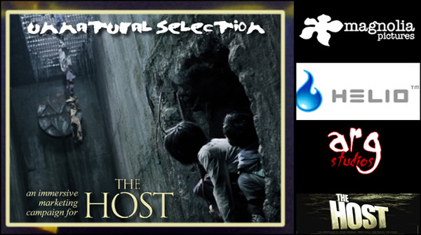 To help promote the 2007 U.S. release of the largest grossing S. Korean movie of all time, The Host, Magnolia Pictures hired me to create an ARG that came to be known as "Monster Hunter Club" by the players, but was called Unnatural Selection by myself and the development team. |